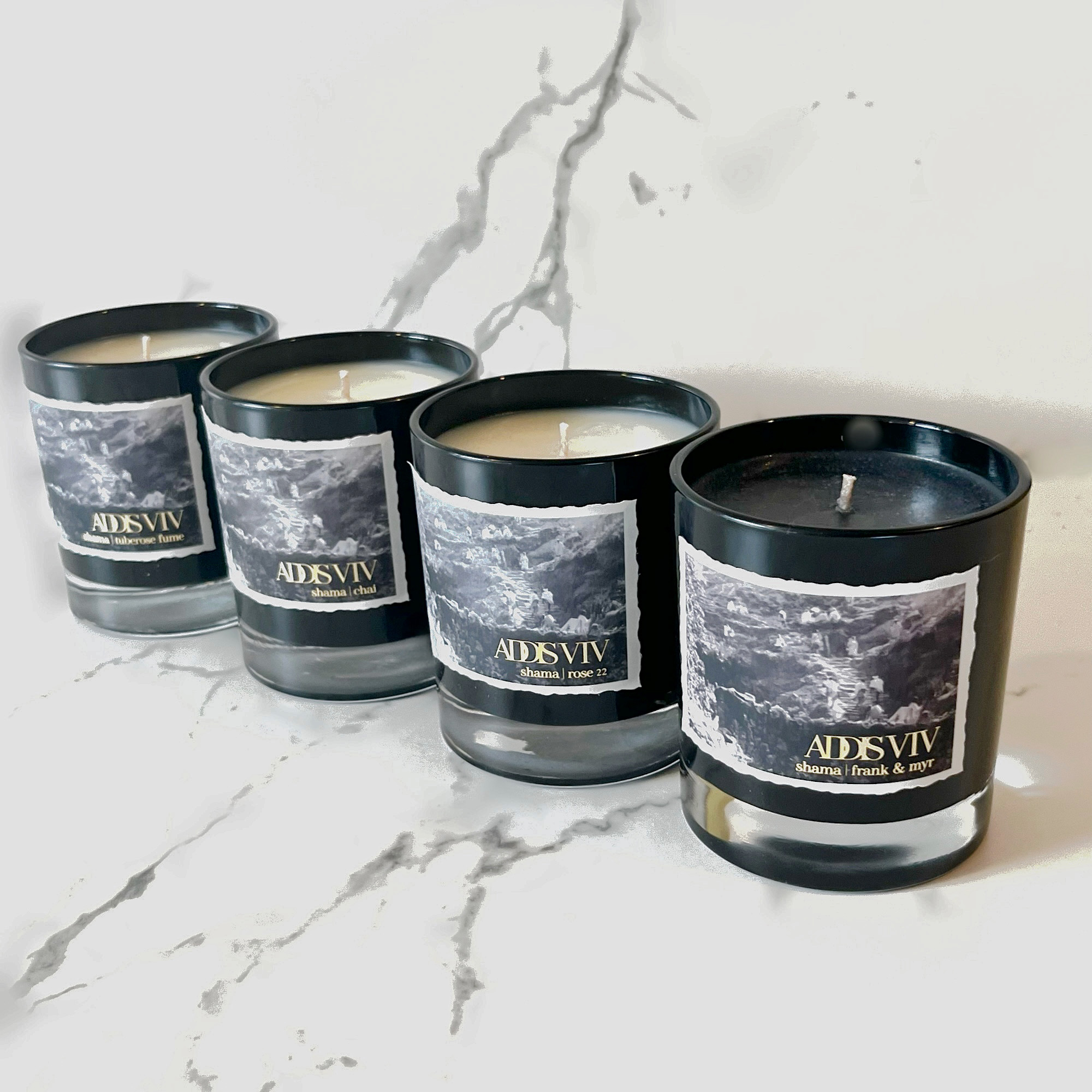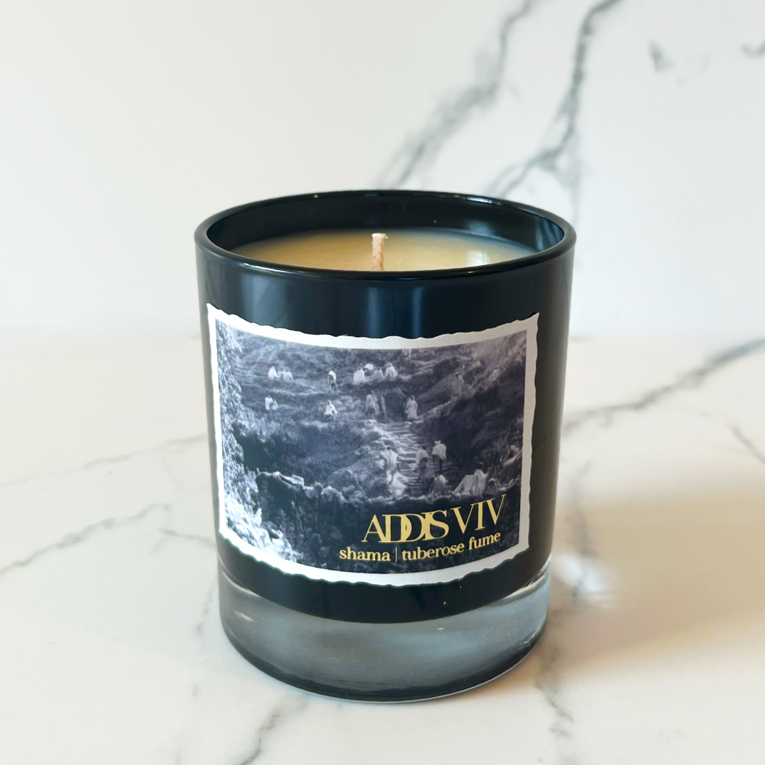 Dedicated to the memories of the past, these 8 oz organic coconut wax candles are contained in a beautiful, ebony tinted glass vessel adorned with a vintage Ethiopian photo. Please allow 7-10 business days for shipping.